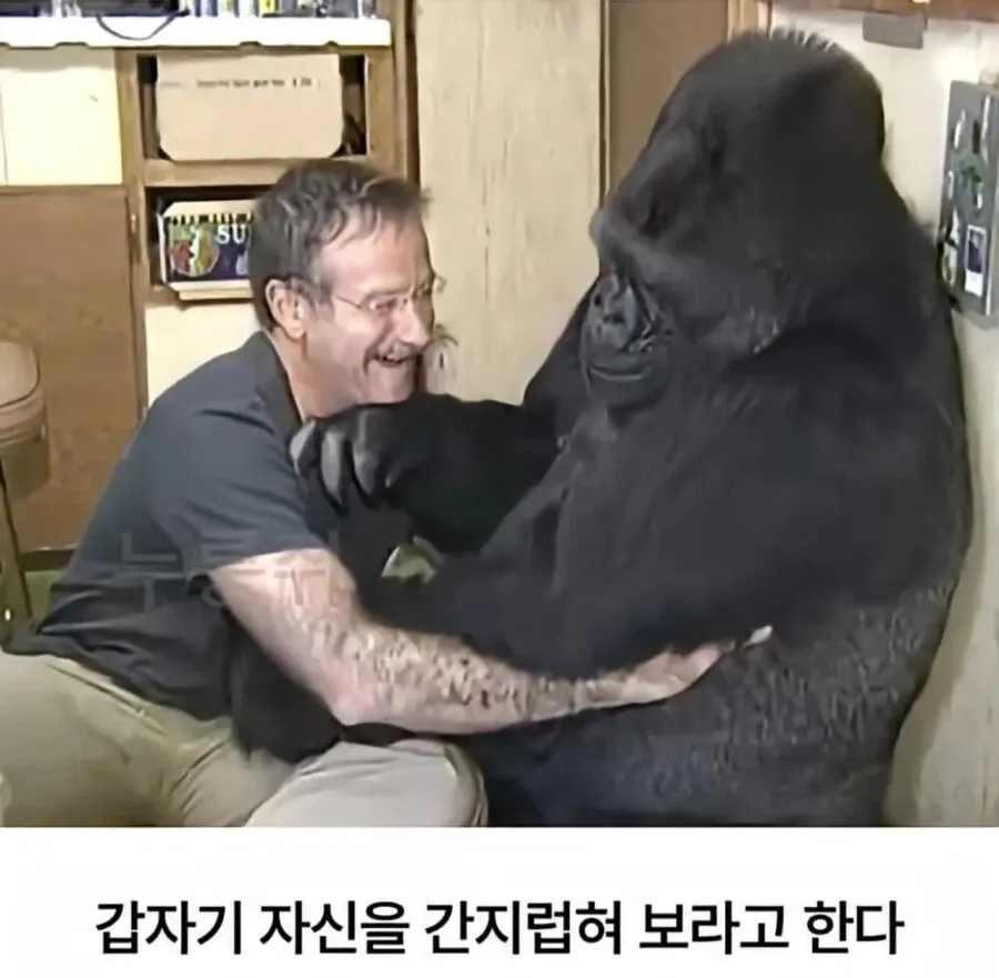 아니야 그게 말이 돼? 고릴라가 진짜 수화 이해한다고 ㅋㅋ 그냥 먹이 받으려고 하는 동작일 뿐임